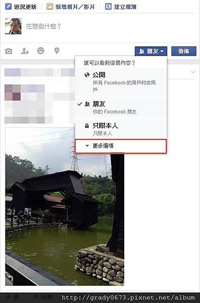 發表文章中不想被人看見、可利用此方式、選擇「更多選項」