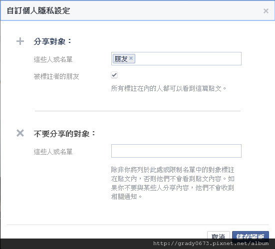 群組等都可加入、單一朋友可以嗎? 當然沒問題...設定好之後請立即按下「儲存變更」即可動作。