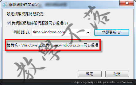 此頁面中將會出現"請稍後,Windows 正在與 time.windows.com 同步處理"